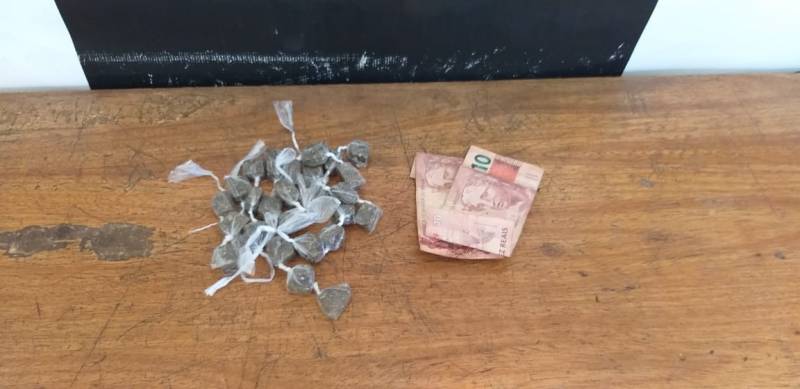 A equipe se deslocou até o endereço informado e surpreendeu um adolescente, de 17 anos, escondendo um invólucro plástico no alambrado de um condomínio. No momento da abordagem, os policiais lograram êxito em localizar dezenas de porções de maconha e dinheiro trocado.