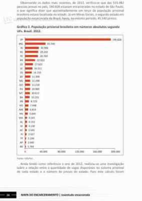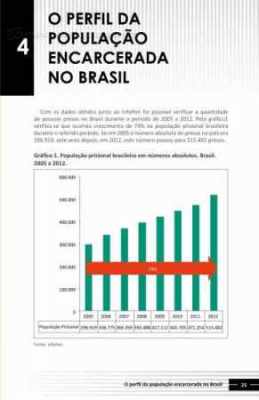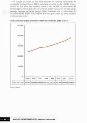 De acordo com o Mapa do Encarceramento, de 2015, a quantidade de pessoas presas no Brasil durante o período de 2005 a 2012 cresceu 74%. Se em 2005 o número absoluto de presos no país era 296.919, sete anos depois, em 2012, este número passou para 515.482 presos. Destas, 190.828 estavam encarceradas no estado de São Paulo. Cabe lembrar, ainda, que 38% da população prisional no país é formada por presos provisórios, ou seja, pessoas que estão sob a custódia do Estado sem que tenham sido julgadas. Outros 61% dos presos são condenados e 1% está sob medida de segurança.