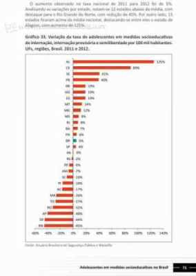 Em pesquisa com 320 estabelecimentos de internação existentes no Brasil, a fim de analisar as condições de internação a que os 17.502 adolescentes em cumprimento de medida socioeducativa de restrição de liberdade estão sujeitos, o CNJ, em publicação oficial, aponta que 43,3% já haviam sido internados ao menos uma outra vez; “além da recorrência dos atos infracionais contra o patrimônio cometidos pelos reincidentes, constata-se que a ocorrência de homicídio na reiteração da prática infracional foi aproximadamente três vezes superior à primeira internação”.