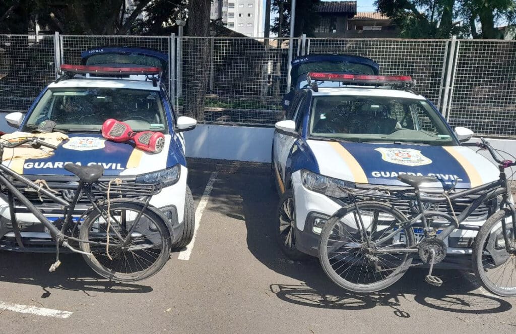 A dupla tentou fugir ao perceber que estava sendo observada, mas foi seguida até uma área de mata na Avenida A19, no Jardim Rio Claro. Com o apoio das equipes de segurança, os objetos furtados, incluindo a bicicleta, ferramentas e um hoverboard vermelho, foram encontrados no local.