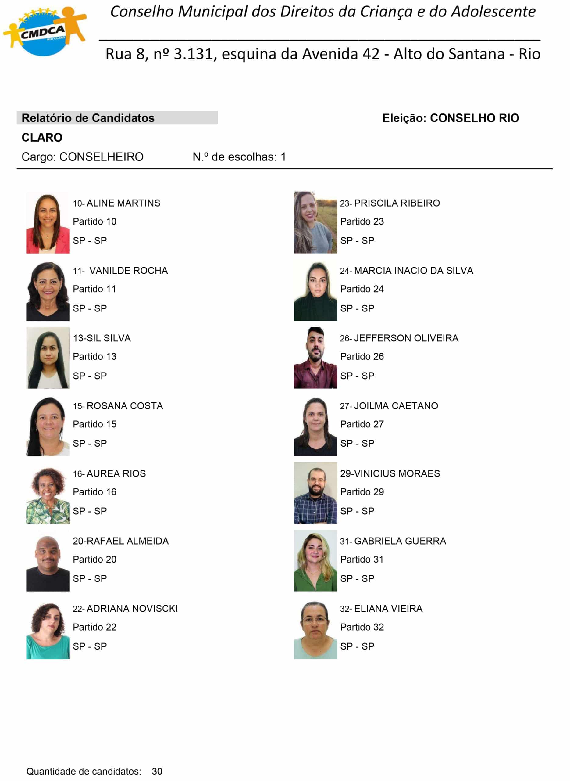O Conselho Municipal dos Direitos da Criança e do Adolescente de Rio Claro realiza neste domingo, 1º de outubro, a eleição para o novo Conselho Tutelar. O município passará a contar com dois grupos de trabalho, um na região norte e outro na região sul, com cinco conselheiros em cada equipe, num mandato de quatro anos. Pela primeira vez, em parceria com o Tribunal Regional Eleitoral, a votação ocorrerá com urnas eletrônicas. Em Rio Claro há 30 candidatos disputando as 10 vagas e a eleição acontece das 8h às 17h em escolas municipais. Para votar, o munícipe deve levar documento com foto.