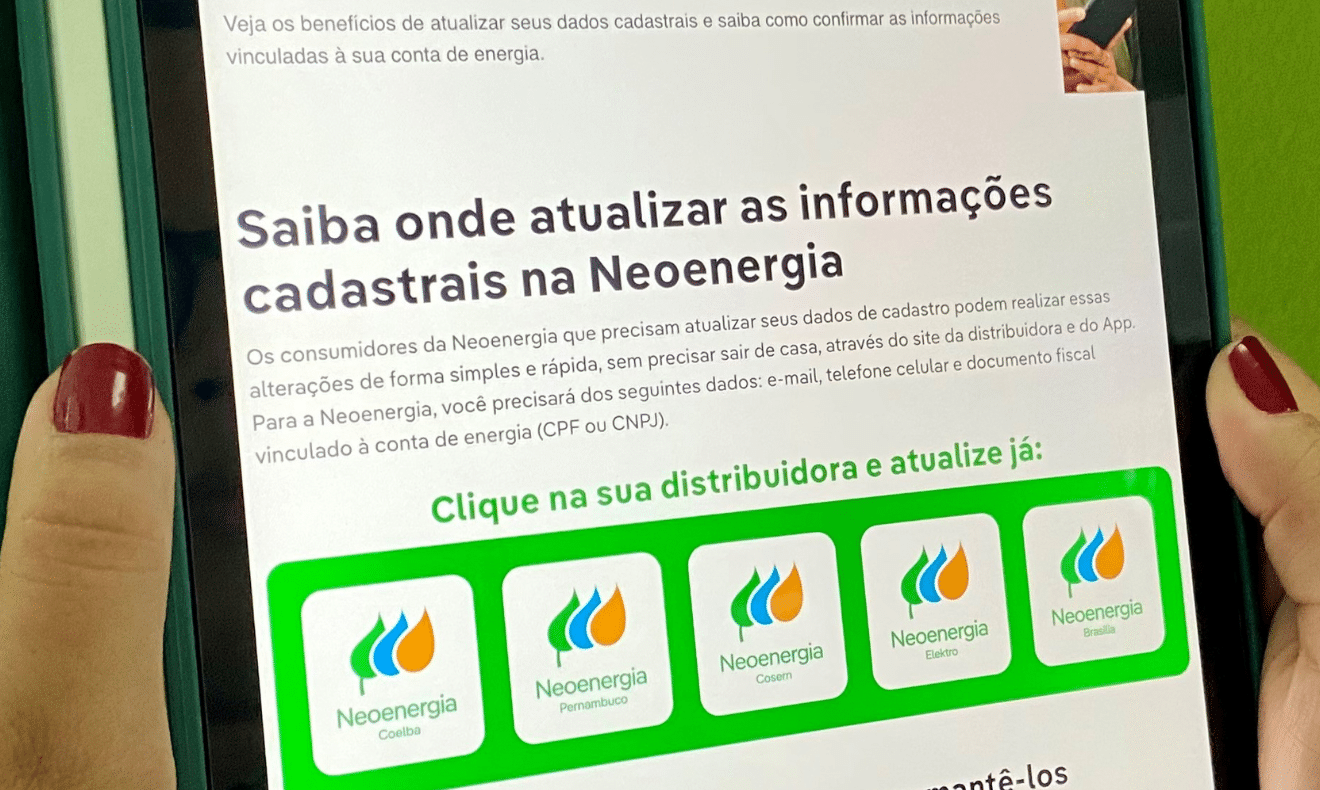 Os dados são coletados através de uma Cloud Page, ambiente seguro que possui endereços distintos para cada distribuidora do grupo Neoenergia. Ao fazer a leitura do QR Code impresso no verso da fatura, o cliente será redirecionado para o preenchimento dos campos com nome completo, telefone, endereço e outros. É possível também acessar o link de atualização cadastral no site oficial da distribuidora clicando aqui.