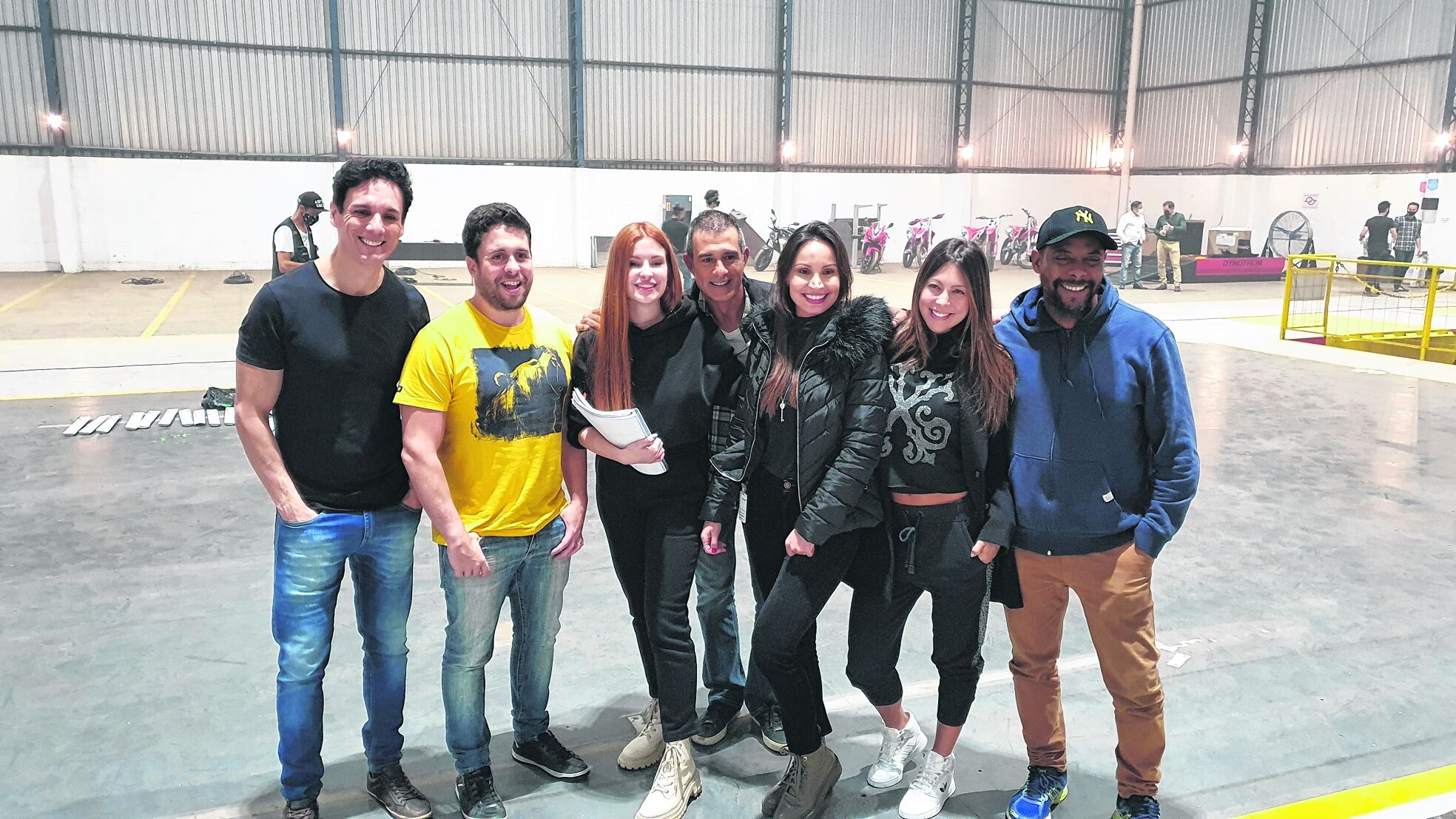 O diretor André Luís Camargo com parte do elenco do filme Tração nas gravações em Rio Claro: Mauricio Meirelles, Bruna Altieri, Marcos Pasquim, Paola Rodrigues e André Ramiro