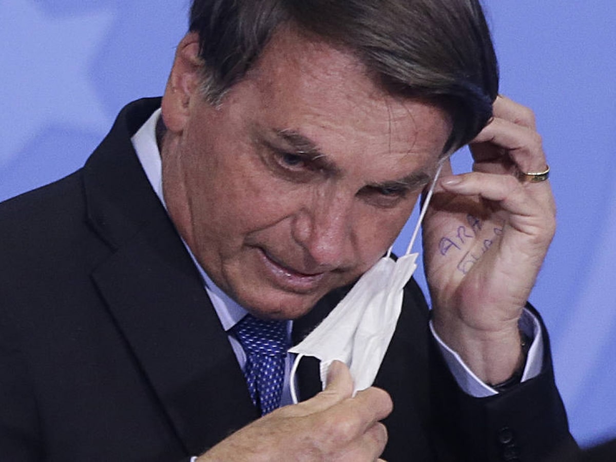 No fim da entrevista na qual fez o anúncio do diagnóstico, o presidente se afastou dos jornalistas e tirou a proteção facial.