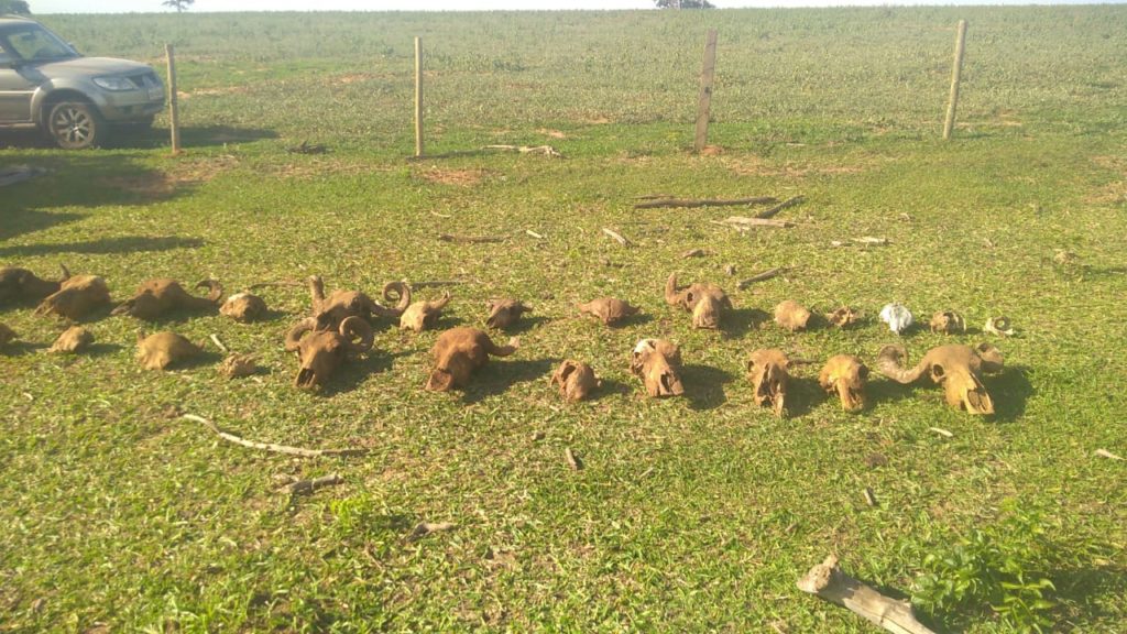 A Polícia Militar Ambiental em prosseguimento das ações conjuntas no interior da propriedade rural no município de Brotas, a qual foi palco de crueldade envolvendo mais de 1.000 (um mil) búfalos, realizou no sábado (11) apoio aos veterinários-peritos pertencentes à ONG ARA e USP representados pela Dra Karina, os quais escavaram diversos pontos da referida propriedade com propósito de instruir inquérito policial quanto a localização de carcaças enterradas desses animais, supostamente mortos em decorrência de abate irregular, ou decorrente de abandono com consequente falta de alimentos, água e cuidados veterinários.