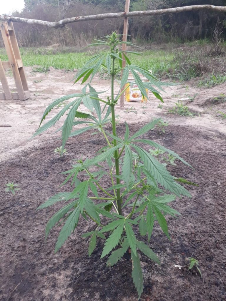 Na manhã de domingo (14), policiais da Equipe Rural realizavam patrulhamento pela Avenida 11, no bairro Campo do Coxo, quando se depararam com dois canteiros onde estavam plantados um total de 102 pés de maconha.