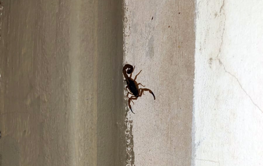 Os meses de agosto e setembro são os mais relacionados ao aparecimento de escorpiões, mas esses invertebrados podem surgir em qualquer época do ano, como é o caso de uma residência localizada no bairro Saúde, em Rio Claro, onde o morador o localizou no batente da porta.