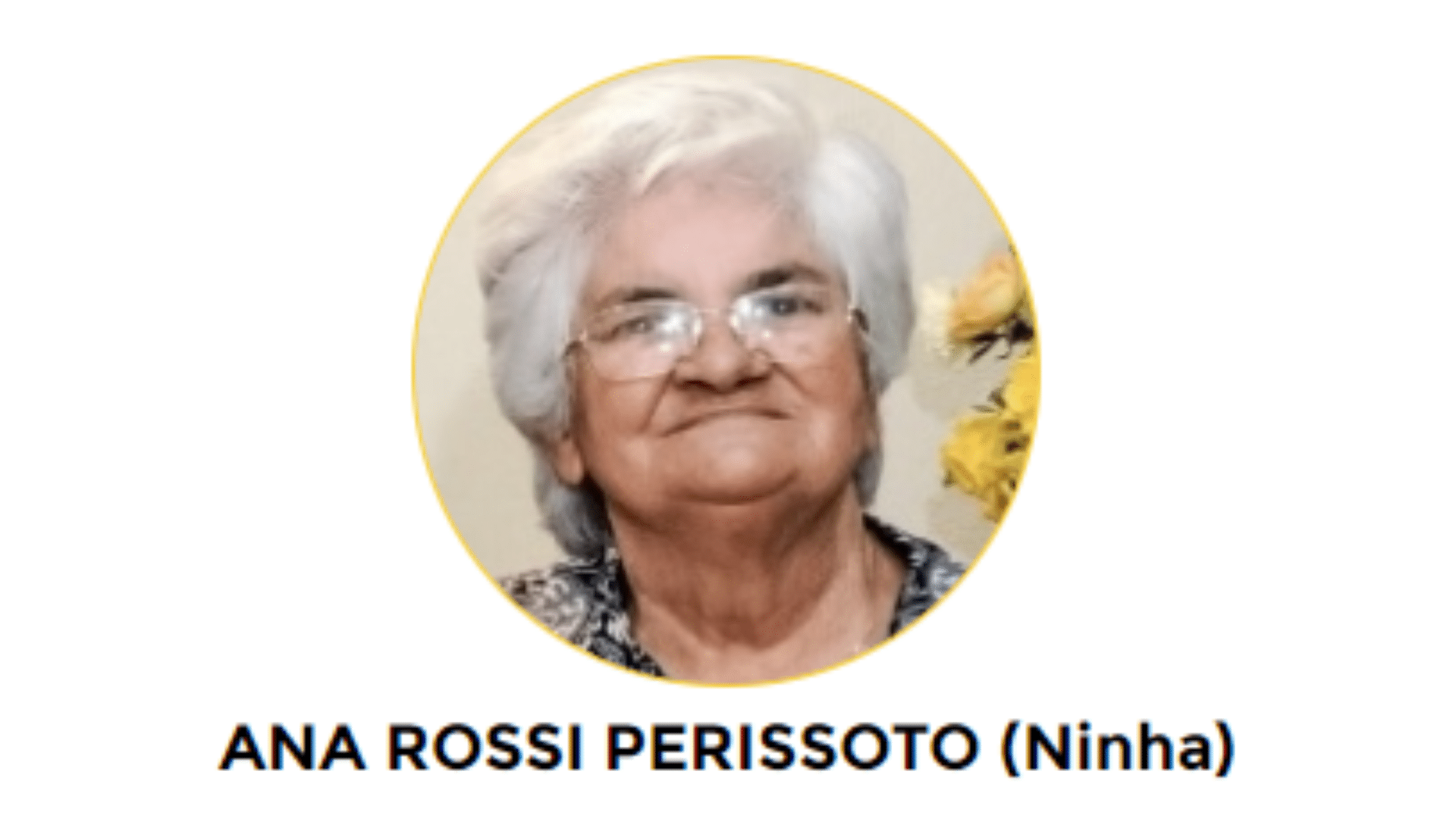 Ana Rossi Perissoto, Ninha – 84 anos. Faleceu dia 5, à 01h52, em Rio Claro. Era viúva de Luiz Perissoto, deixou os filhos Luiz c/c Veronica, Valdir, José Eduardo c/c Gislene, 6 netos e 1 bisneto. Foi sepultada no Cemitério Memorial Cidade Jardim;