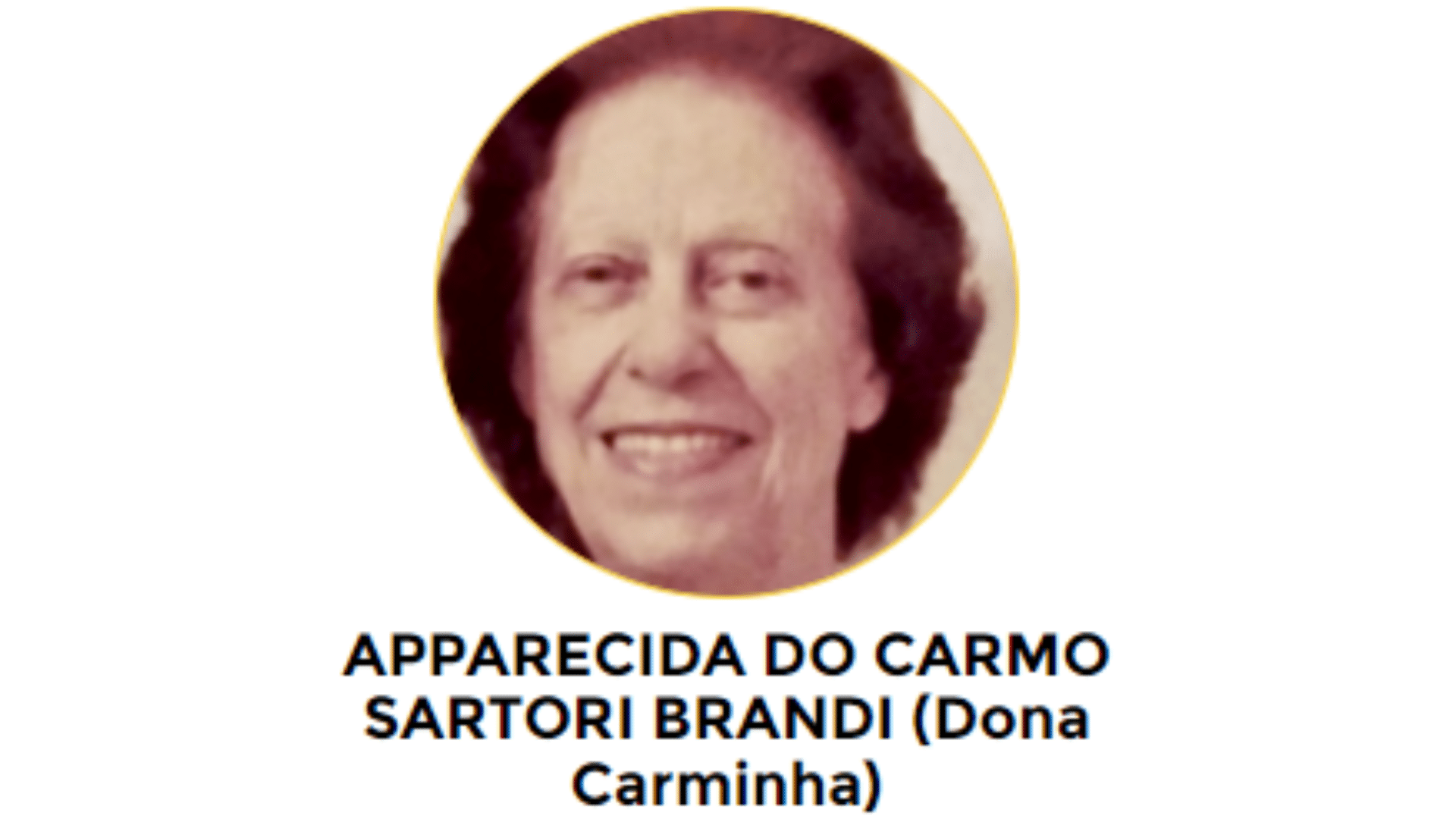 Apparecida do Carmo Sartori Brandi, Dona Carminha – 92 anos. Faleceu dia 20, às 05h40, em Rio Claro. Era viúva de Antonio Teixeira Brandi, deixou a filha Marly. Foi sepultada no Cemitério São João Batista;