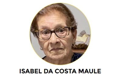 Isabel da Costa Maule – 89 anos. Faleceu dia 21, às 19h30, em Rio Claro. Era viúva de José Maule, deixou os filhos Paulo, José, João (falecido), 9 netos e 5 bisnetos. Foi sepultada no Cemitério São João Batista (Funerária João de Campos).