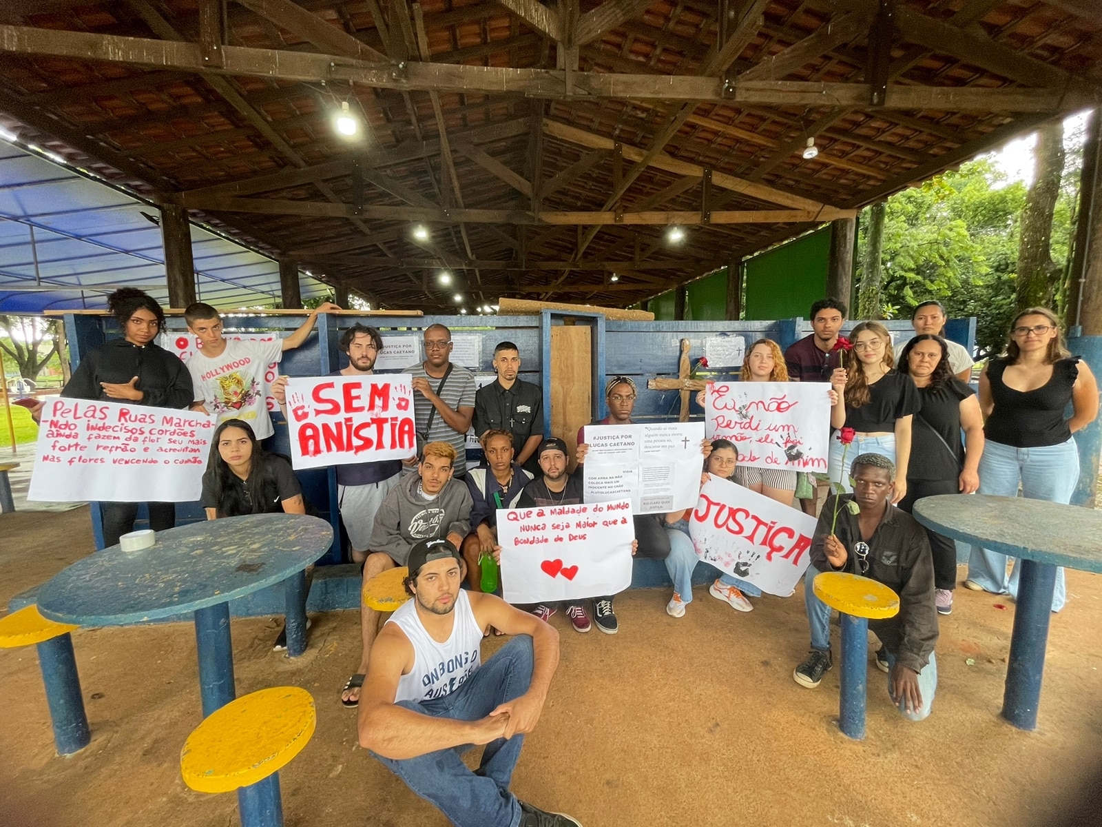 Com cartazes e flores, o pedido de Justiça foi unânime entre os que participaram. Lucas morreu após ser atingido por um tiro no rosto disparado por um vigia de uma empresa terceirizada que presta serviço para a prefeitura. Na ocasião, um outro frequentador que estava com Lucas também foi atingido com um tiro no rosto e segue internado na Santa Casa de Rio Claro.