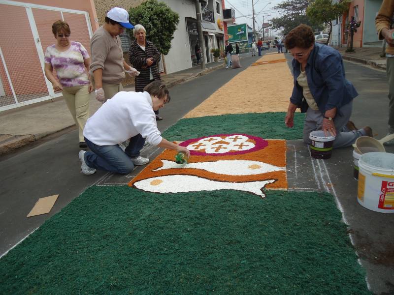 Em Rio Claro, a paróquia Nossa Senhora Aparecida mantém a tradição dos tapetes coloridos. Neste ano, serão confeccionados 1.500 metros. O trabalho terá início às 6h, com missa no Lago Azul às 16h.