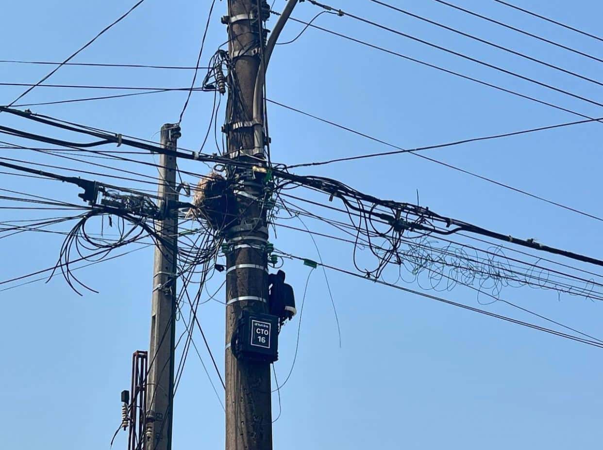Imagem mostra emaranhado de fios na Rua 4 com a Av. 23