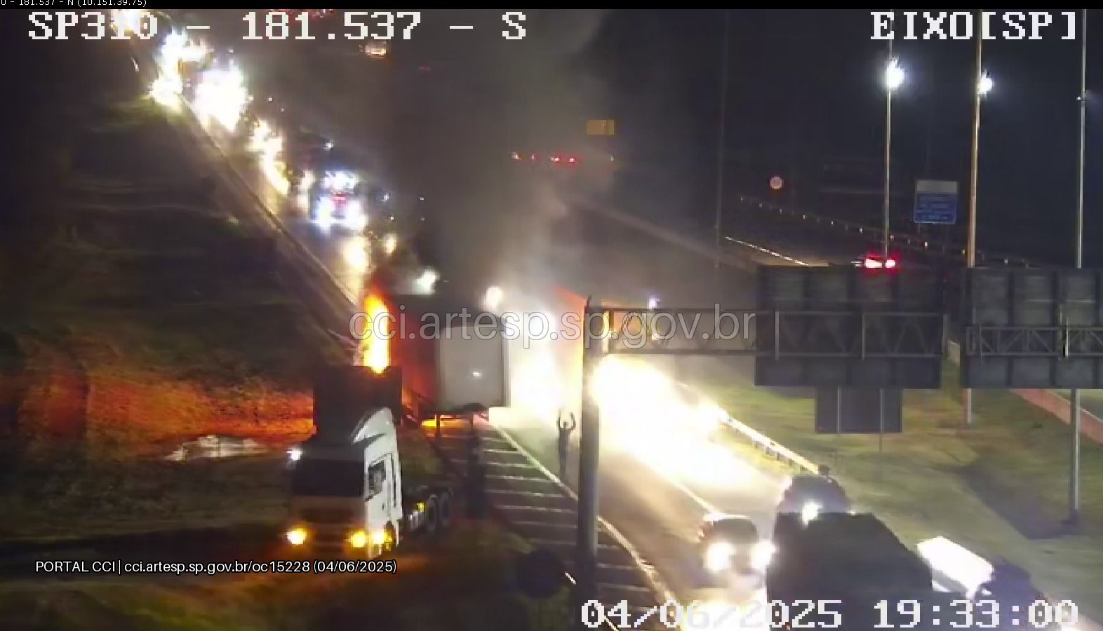 Um incêndio em uma carreta interditou a Rodovia Washington Luís (SP-310), na altura do km 181,350, em Rio Claro, no início da noite desta quarta-feira (4). O incidente ocorreu por volta das 18h29 e continua pelo local.