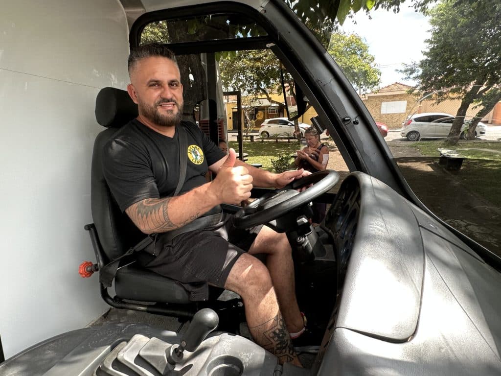 “É um ônibus com estrutura bem forte, o chassi dele foi reforçado para trabalhar, tudo foi feito conforme a exigência do INMETRO” relata. Na parte externa Samuel ainda acrescentou uma TV de 50 polegadas para tocar músicas e passar o futebol nas quartas-feiras.