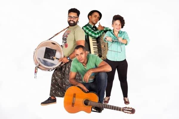 A banda, que também tem trabalhos autorais, é formada por Tom Santana (voz e violão), Jaqueline Rodrigues (percussão) e Jefferson de Melo (zabumba). Na sanfona, há sempre um convidado talentoso para reforçar a identidade nordestina. Para hoje, contará a presença do sanfoneiro Felipinho Costa.