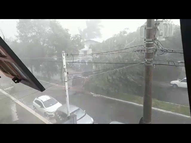 Uma forte chuva, acompanhada de muito vento, no início da tarde desta quarta-feira (13) causou espanto em moradores de Rio Claro e causaram transtornos em vários pontos da cidade.