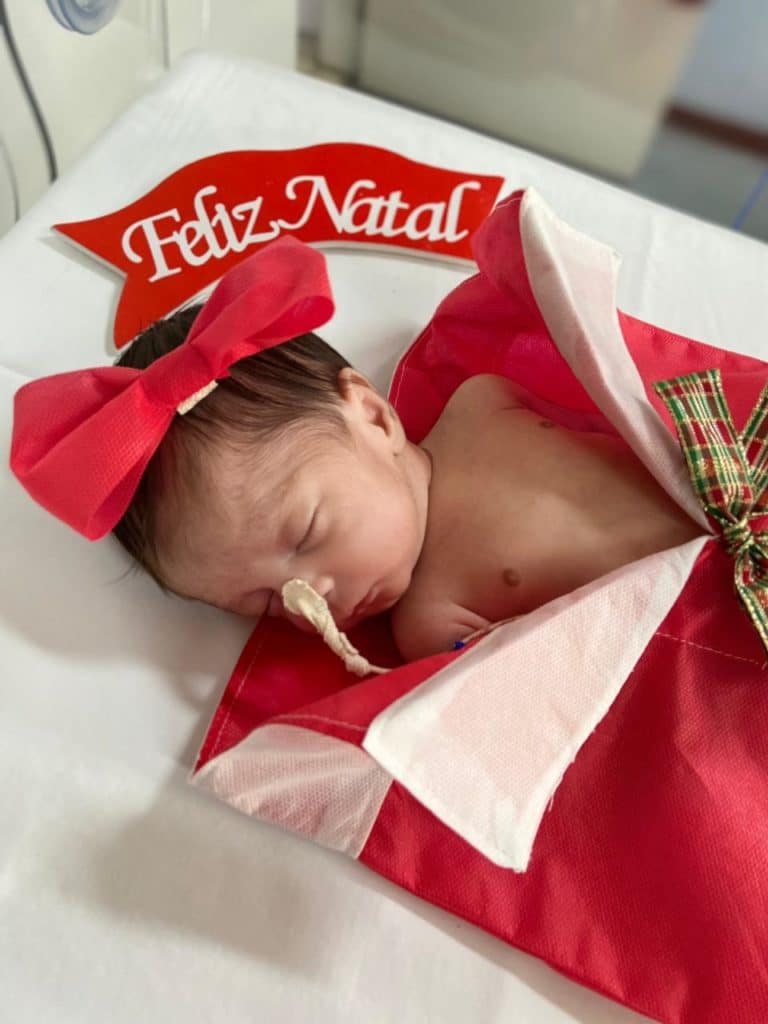 Os bebês prematuros internados na UTI Neonatal e Berçário da Santa Casa de Rio Claro, entraram no clima e foram vestidos de roupinhas natalinas para celebrar o natal. Mesmo diante de toda problemática da pandemia, com restrições e cuidados redobrados, os profissionais do setor não poderiam deixar de celebrar o primeiro natal com os pequeninos. A coordenadora da UTI neonatal, Rebeca Amoroso, acrescenta que as fotos devem aproximar os pais aos bebês guerreiros, especialmente, porque eles possivelmente passarão a data no hospital. É uma forma de humanização e acalento aos corações dos pais.