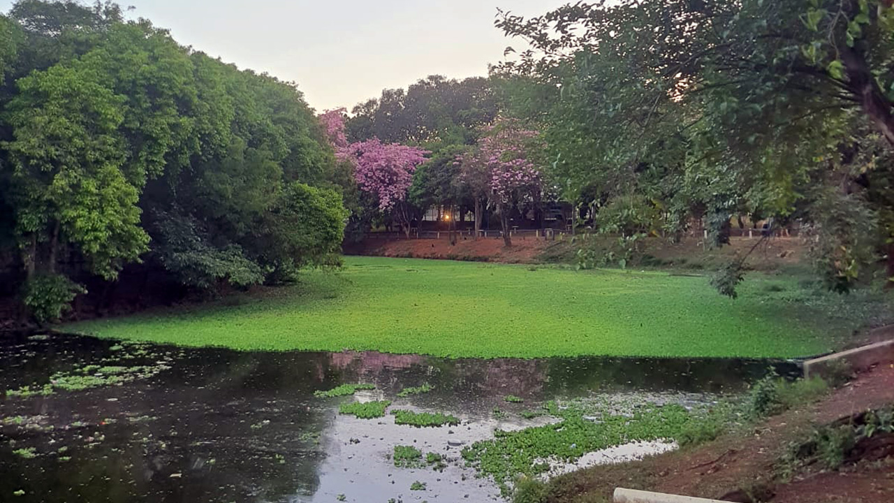 Quem passou pelo Parque Lago Azul nos últimos dez dias conseguiu observar uma mudança no cenário do local. Uma grande vegetação tomou conta de boa parte da margem do lago e tem chamado bastante a atenção. Peixeis mortos também foram registrados, assim como a presença de lixo.