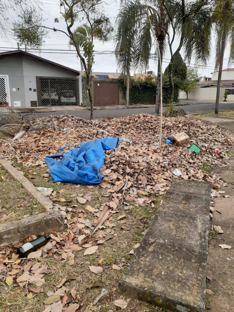 Segundo consta, funcionários da prefeitura varrem as folhas que caem das árvores e amontoam a sujeira em determinados pontos. Acontece que o material não é recolhido e se acumula com outros resíduos despejados por populares. “Como as folhagens não são recolhidas, algumas pessoas acabam jogando mais lixo no local, aumentando a sujeira do espaço. É triste e vergonhoso”, Maria José.