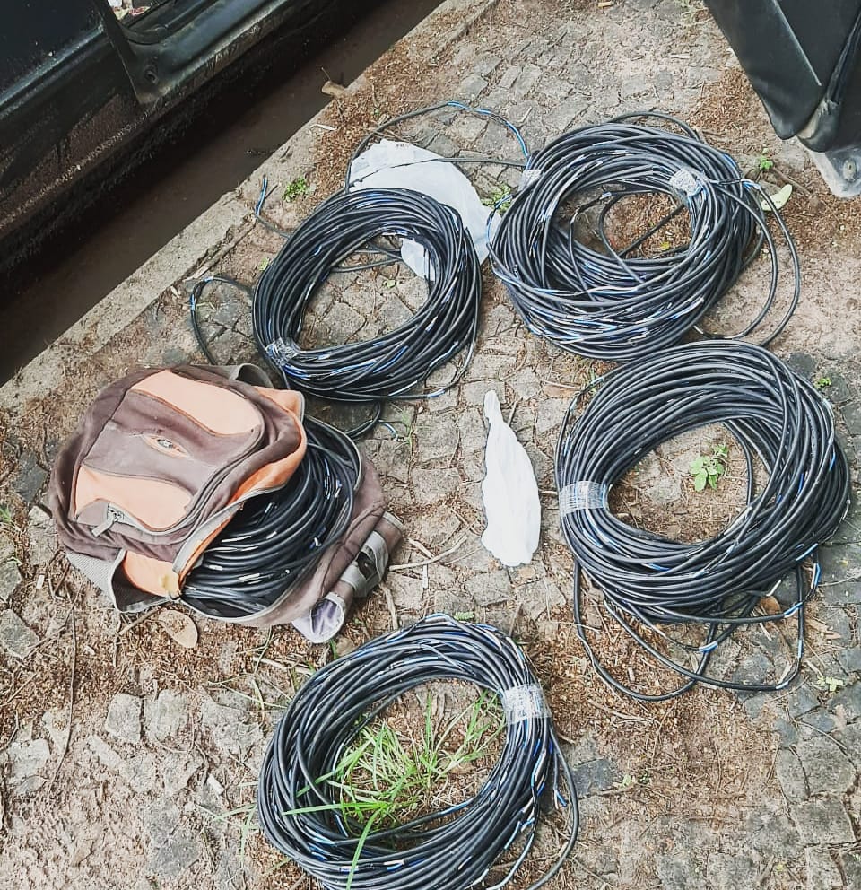 Na tarde de quinta-feira (14), por volta das 15 horas, uma viatura da Guarda Civil Municipal foi solicitada via Central de Comunicação da GCM (CCOM), a comparecer no bairro Jardim Portugal tendo em vista que um GCM que estava de folga avistou alguns indivíduos saindo com rolos de fios de dentro de um barracão.