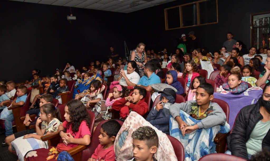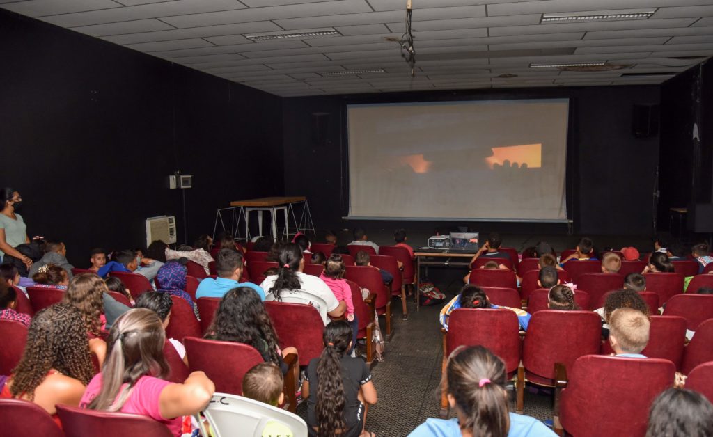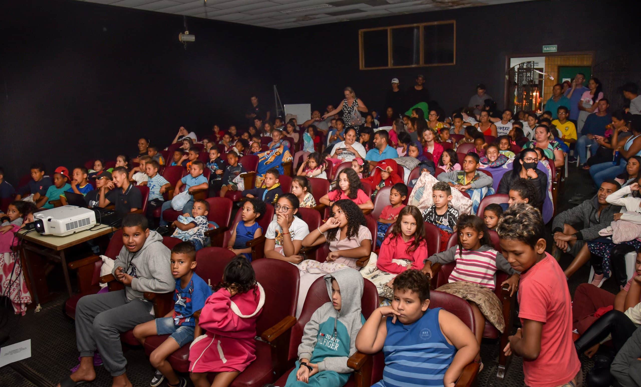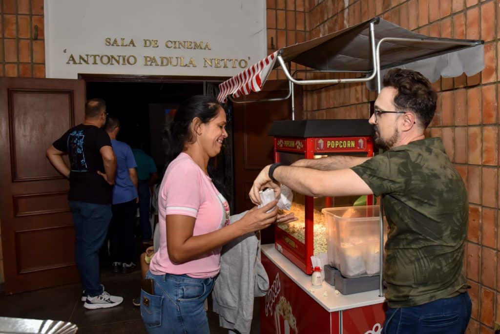 Por conta dos ventos, a instalação do telão na área externa do Lago Azul ficou impossibilitada e a sessão foi realizada na sala de cinema do Centro Cultural.