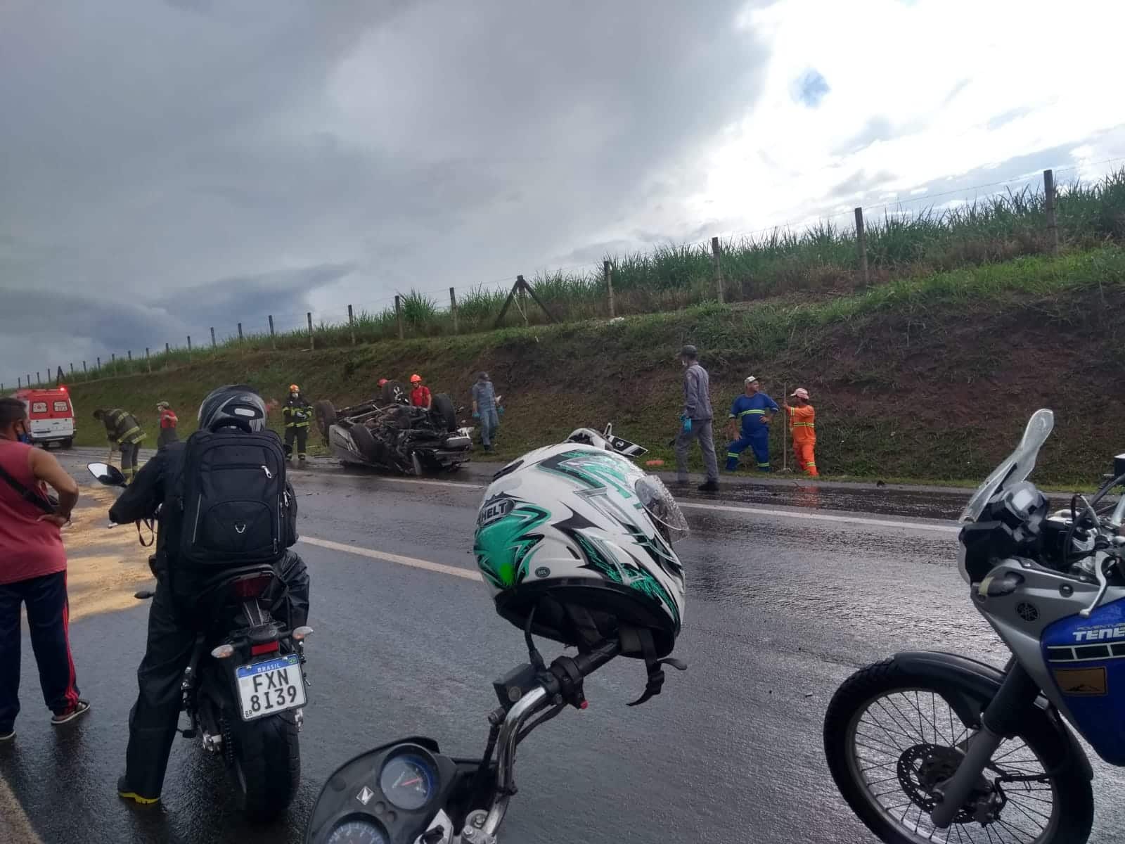 Por conta do capotamento, a faixa esquerda da rodovia precisou ser interditada, causando congestionamento no local.