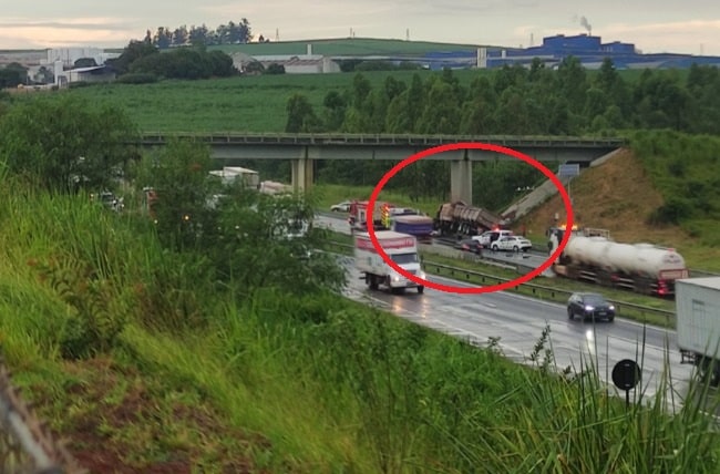 Segundo informações da concessionária Eixo SP, que administra o trecho, a ocorrência no Km 170+095m envolveu um caminhão e uma motocicleta.