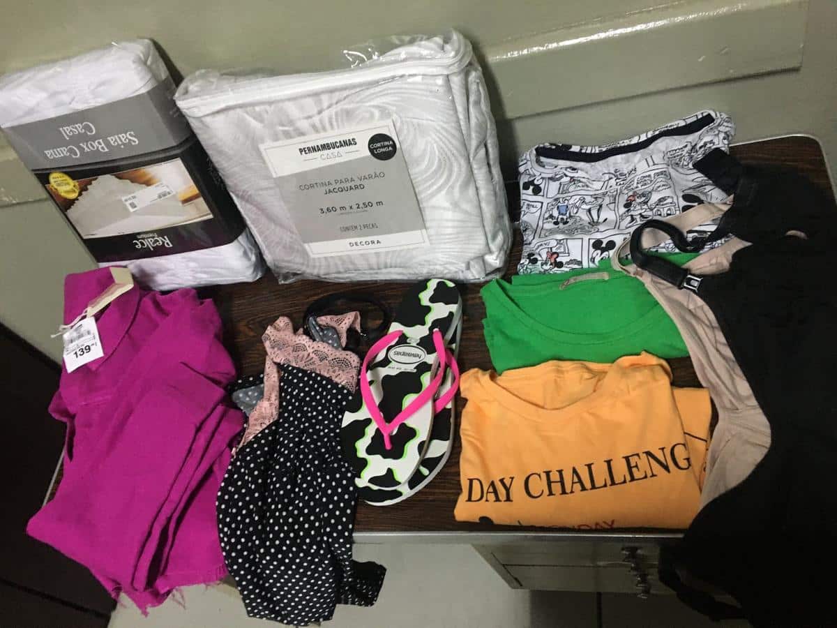 A mulher grávida alegou que praticou o crime porque estava passando por dificuldades e precisava adquirir coisas para seu filho que está para nascer. Foram apreendidos sete desodorantes, shampoo, condicionador, tintura para cabelos, mascara hidratante, shortdool, kit com colheres, faqueiro com 20 peças, potes de nutela de 350 gramas, camisetas, chinelo, camisola, jaqueta, cortina, calça jeans, mochila, bolsa, celular, capinha, fralda, vasilhames com balas e sutiã para amamentação.