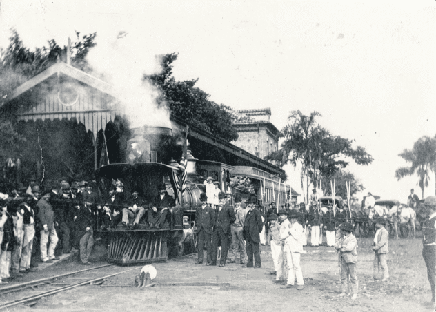 Segundo e último imperador do Brasil, Dom Pedro II foi um entusiasta da tecnologia: “Foi em seu governo que foram construídas as primeiras linhas telegráficas e a primeira estrada de ferro do Brasil. A primeira visita de Pedro II a Rio Claro foi em 20 de setembro de 1878 e foi algo rápido. Se hospedou onde hoje é o prédio da escola para no dia seguinte partir e inaugurar a ferrovia de Cordeirópolis a Araras. Consta que nesta oportunidade ele deixou de presente uma espada da Guarda Nacional que hoje fica guardada na Loja Maçônica Estrela do Rio Claro na Rua 4 com a Avenida 9”, esclareceu José Roberto Sant’Ana, jornalista e pesquisador da história da cidade de Rio Claro.