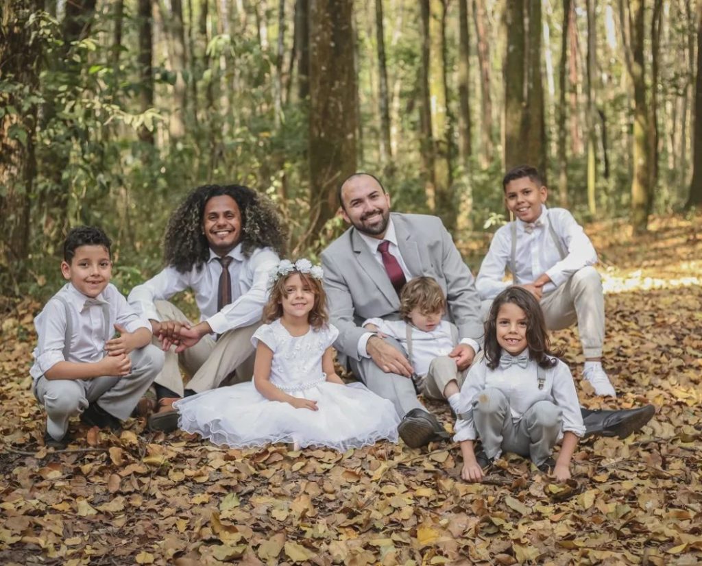 Casal homoafetivo de Rio Claro batiza seus cinco filhos