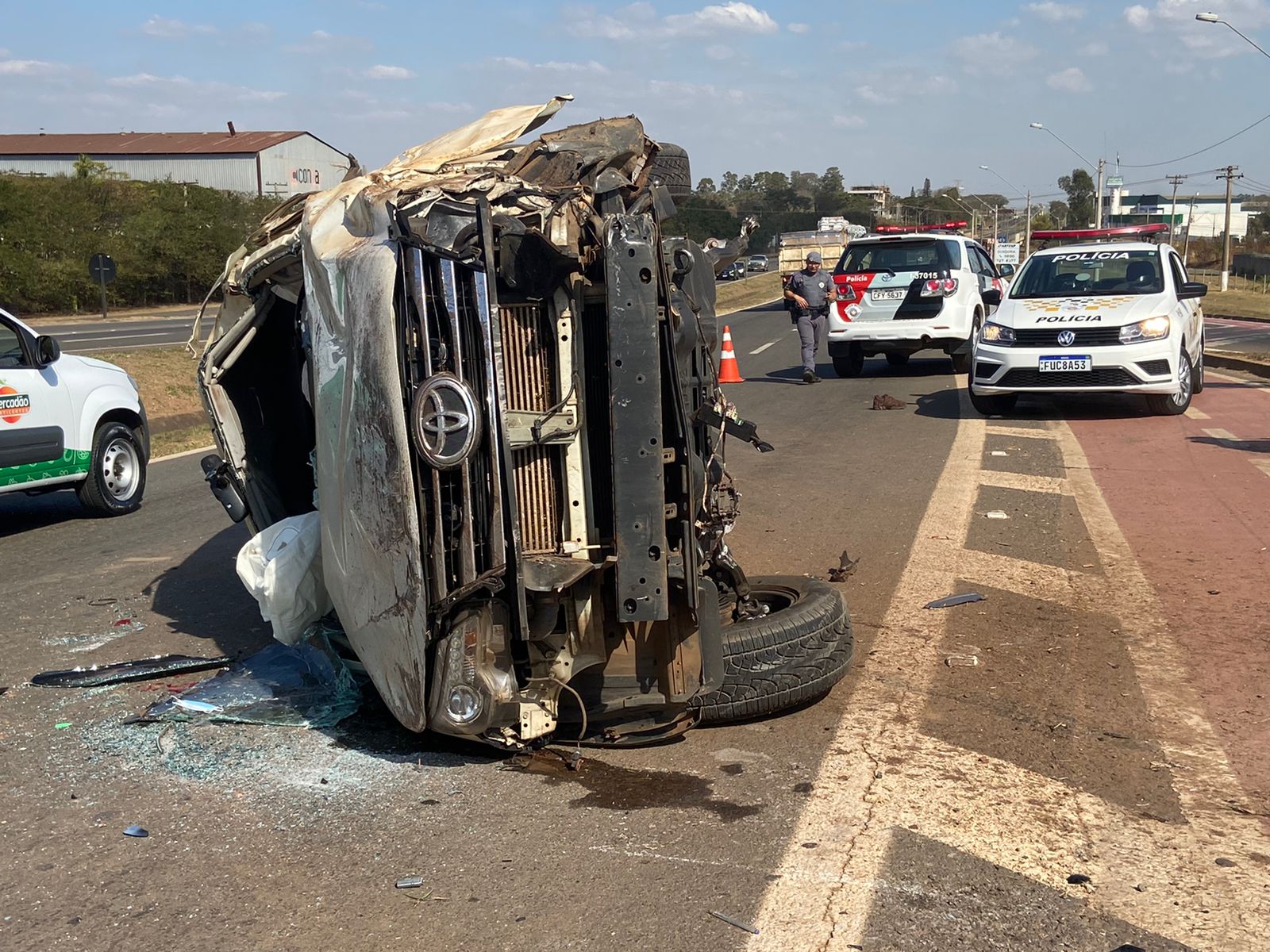 Os policiais seguiram a caminhonete pela Rodovia Washington Luís até a alça de acesso para a SP-127, local onde aconteceu o capotamento. O criminoso perdeu o controle do veículo, colidiu contra a defensa metálica e acabou capotando até invadir a rodovia que liga Rio Claro a Piracicaba.