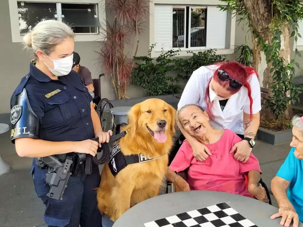 Pela instituição cerca de 60 idosos já passaram pela terapia e exercícios com o cão Holly: “Os benefícios que o contato com o cão proporciona são notáveis a cada visita, o que proporciona uma sensação de bem-estar e alegria aos idosos”, afirma o GCM Rafael, que implantou o projeto no município.