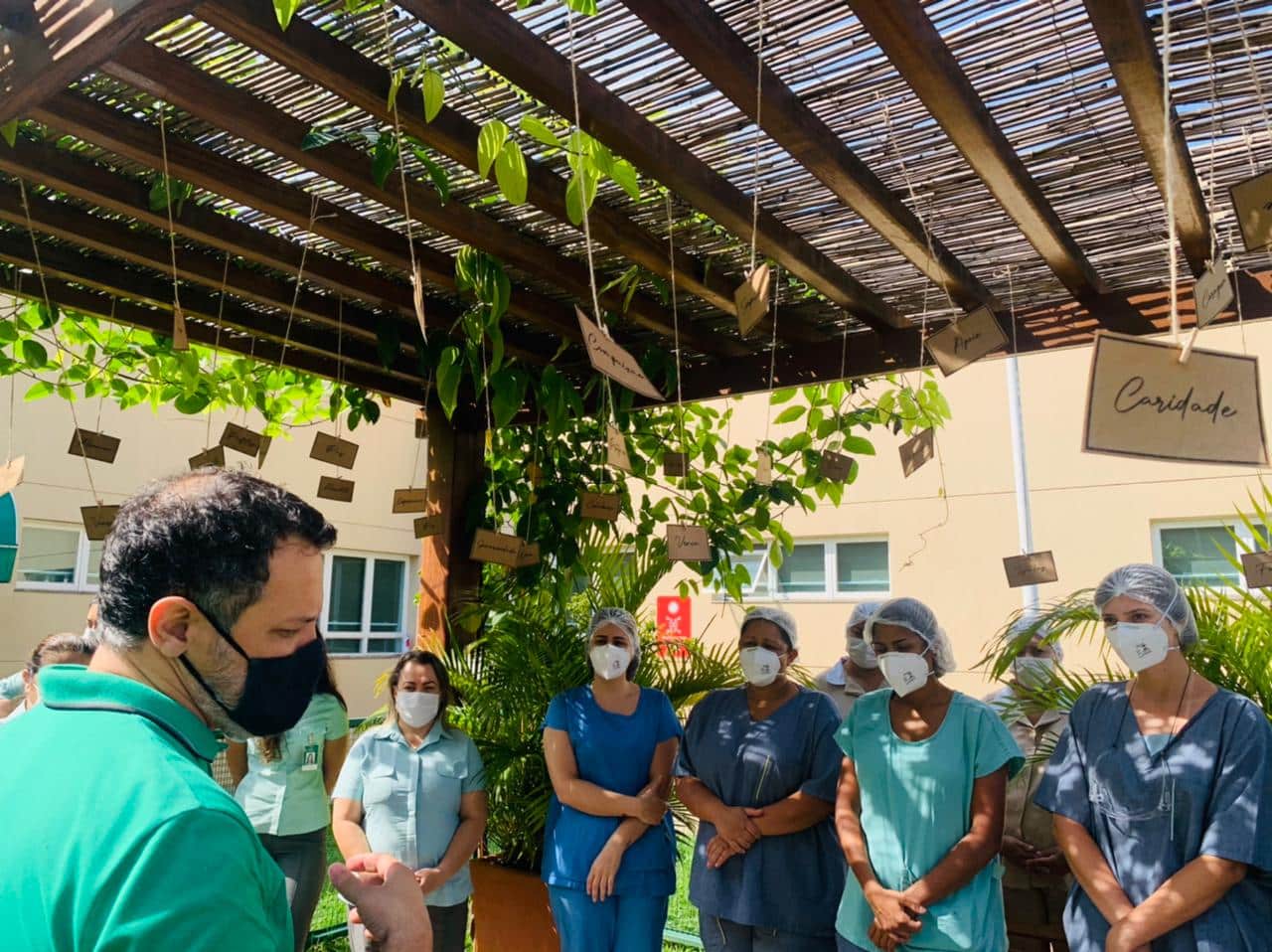 A celebração foi conduzida por um pastor e foi realizada em todos os turnos do hospital e se tornou um momento para a renovação da fé e esperança dos profissionais que estão na na linha de frente da pandemia do novo coronavírus desde março do ano passado.