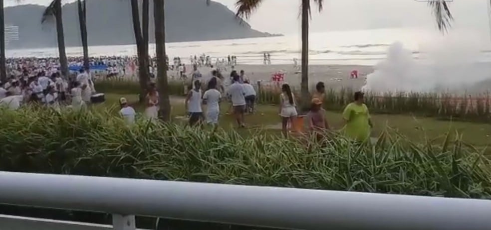 Em imagens registradas por banhistas é possível ver a Polícia Militar usando bombas de efeito moral para dispersar uma aglomeração em uma praia que estava fechada.
