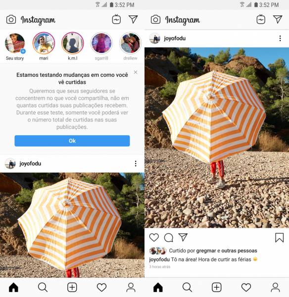 A mudança ainda está em período de testes, que foram iniciados há cerca de um mês no Canadá e agora chegaram ao Brasil, mas os responsáveis pelo Instagram parecem estar satisfeitos com os resultados iniciais e devem manter as alterações