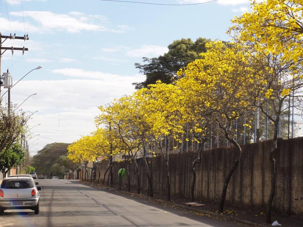 O amarelo da florada começou de maneira sutil, mas logo tomou conta dos ipês desta espécie espalhados pela cidade de Rio Claro. Encontrar alguém apreciando a beleza das árvores não é difícil, até mesmo porque realmente chamam a atenção.