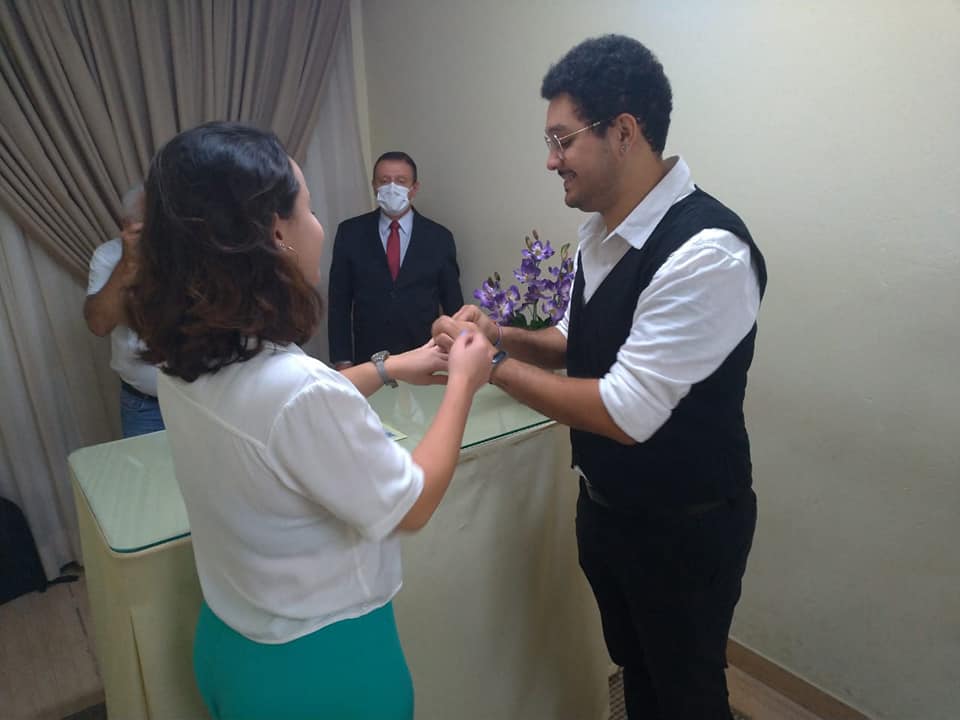 O casamento de Gabriela Silva Altarugio, e Pedro Augusto de França Souza estava marcado pra acontecer no final de março, mas com as mudanças acabaram se casando no dia 14 de abril. “O procedimento no cartório com os padrinhos, assinatura dos papéis e as fotos, foi normal, mas não deixou de ser um casamento diferenciado, por causa da distância que tínhamos que ficar dos outros casais e pelo uso de máscaras. Mas a lembrança que fica é de um dia maravilhoso, no qual pudemos quebrar com segurança a rotina e realizamos um desejo que estava crescendo em nós! Felicidade foi o sentimento predominante”, ressalta Gabriela.