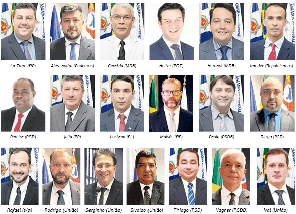 Atualmente são nove os partidos que constituem o Poder Legislativo. A maior bancada é a do União Brasil, que conta com Rodrigo Guedes presidente da sigla, Val Demarchi líder e os vereadores Serginho Carnevale e Sivaldo Faísca. O PSD, partido do prefeito Gustavo Perissinotto, tem três vereadores: José Pereira, presidente da própria Casa de Leis, além dos vereadores Diego Gonzales e Thiago Yamamoto.