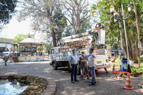 O Jardim Público de Rio Claro está mais claro e iluminado. Nesta sexta-feira (15), a prefeitura instalou 12 refletores de 400 watts de potência nas proximidades dos sanitários. Eles vão reforçar a iluminação das lâmpadas de mercúrio de 250 watts, melhorando a claridade. Na próxima semana, serão instalados refletores no outro lado da praça, onde fica a Fonte do Índio.