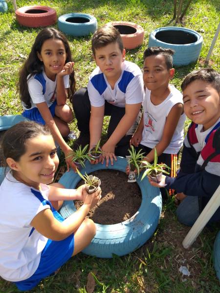 Aquilo que era um desejo da equipe escolar ganhou forma para que ofereça benefícios coletivamente. Trata-se de um jardim vivo, não só no que se refere às plantas, mas também aos materiais, pois, como estão expostos ao tempo, estragarão rapidamente e serão trocados por outros confeccionados por outras turmas, acontecendo um rodízio permanente”, reforça Aline.