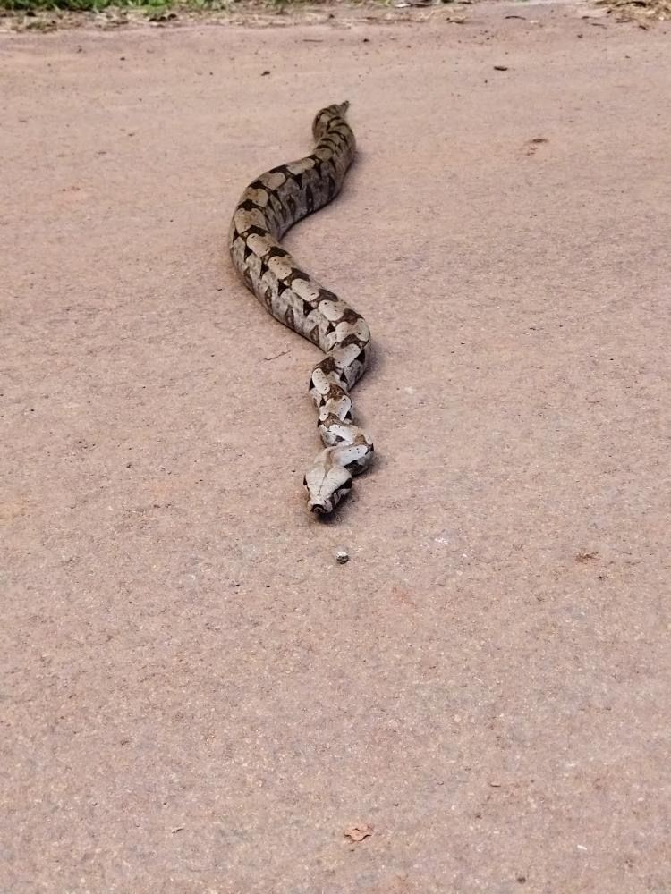Uma jiboia cinzenta foi flagrada nessa segunda-feira (27) atravessando uma das vias dentro da Floresta Estadual “Edmundo Navarro de Andrade”, a @feena_rc, antigo Horto Florestal de Rio Claro. O animal foi avistado pelos funcionários da unidade de conservação.