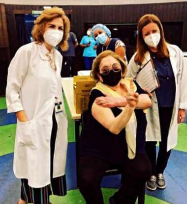 Quem também aproveitou a nova fase para se vacinar foi a atriz Aracy Balabanian, de 81 anos, que posou para fotos ao lado da equipe de vacinação exibindo o braço onde a aplicação foi feita.