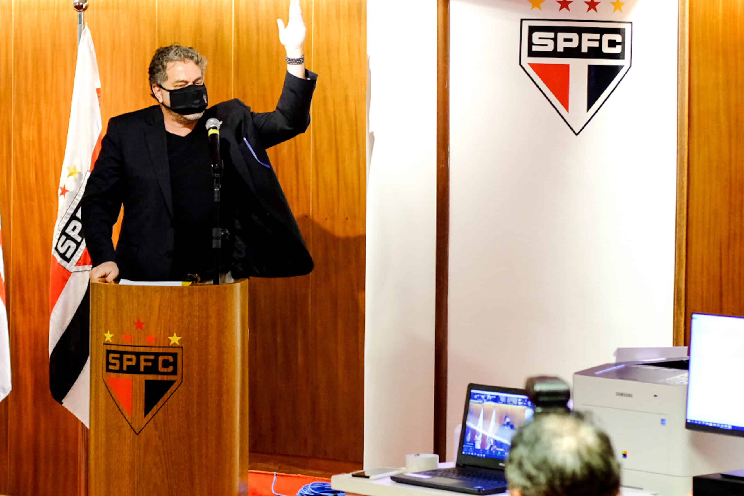 SÃO PAULO, SP, 12.12.2020 – ELEIÇÃO-SÃO PAULO – Julio Casares, 59, foi eleito presidente do São Paulo para os próximos três anos na noite deste sábado (12), no Morumbi. Ele venceu Roberto Natel, por 155 votos a 78, e irá suceder Carlos Augusto Barros e Silva, o Leco. Executivo da área de mídia, foi diretor de marketing na administração de Juvenal Juvêncio (2006-2014) e vice-presidente geral na gestão de Carlos Miguel Aidar, eleito em 2014 e que renunciou no ano seguinte. (Foto: Fernando Nascimento/Photo Press/Folhapress)
