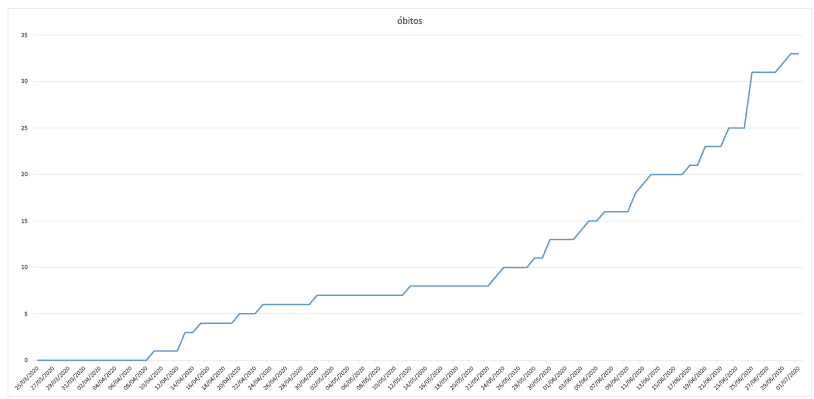 Dos 33 óbitos registradas no município, 25 pertencem ao grupo de idosos