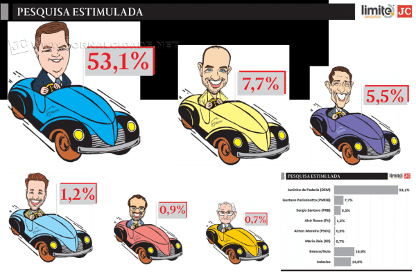 Se as eleições fossem hoje, o candidato a prefeito Juninho da Padaria (DEM) seria eleito com 53,1% das intenções de voto. É o que evidencia a pesquisa encomendada pelo Jornal Cidade e realizada pela Limite Consultoria e Pesquisas de Marketing. Em agosto, quando também estava à frente dos adversários, o candidato possuía 42,7% das intenções.