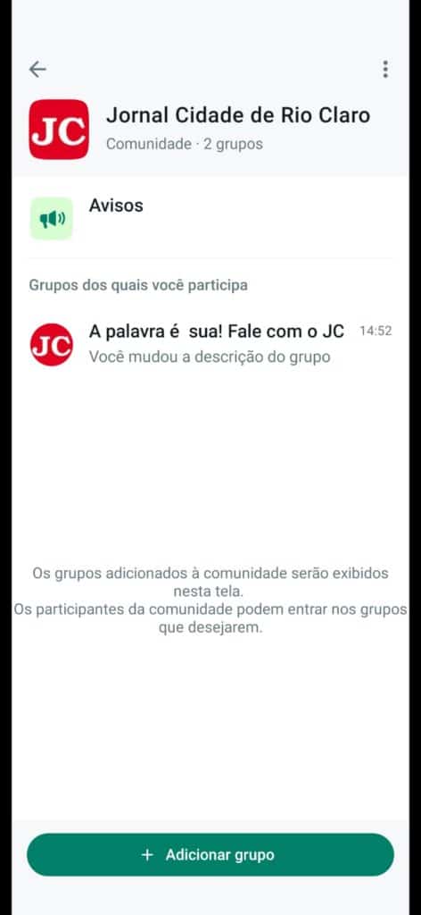 É isso! Ao clicar no link, você será automaticamente adicionado à nossa comunidade no WhatsApp. É uma maneira conveniente de se manter informado sobre tudo o que acontece em Rio Claro e região, sem a necessidade de chat ou conversas confusas.