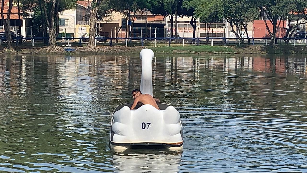 Continua foragido o ladrão que escapou da Guarda Civil Municipal de Rio Claro ao utilizar um pedalinho e adentrar na tubulação de água pluvial do Parque Municipal do Lago Azul na tarde de quarta-feira (2). Na ocasião foi divulgado que o indivíduo havia agredido uma pessoa para praticar o crime, porém o que ocorreu foi que ele havia tentado furtar uma residência no bairro Vila Aparecida e foi ‘descoberto’ por populares.