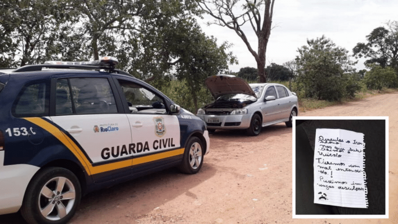 Quando foi localizado o carro estava abandonado e, no banco do motorista, havia um bilhete de desculpas escrito pelos criminosos que furtaram o veículo.