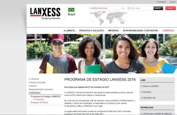 A LANXESS, multinacional alemã e líder global em especialidades químicas, acaba de abrir as inscrições para o seu Programa de Estágio 2018. Os interessados podem se inscrever pelo site da Meta Talentos até 13 de novembro.